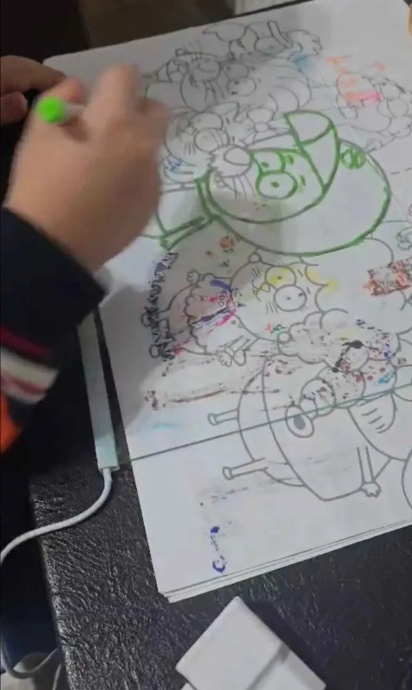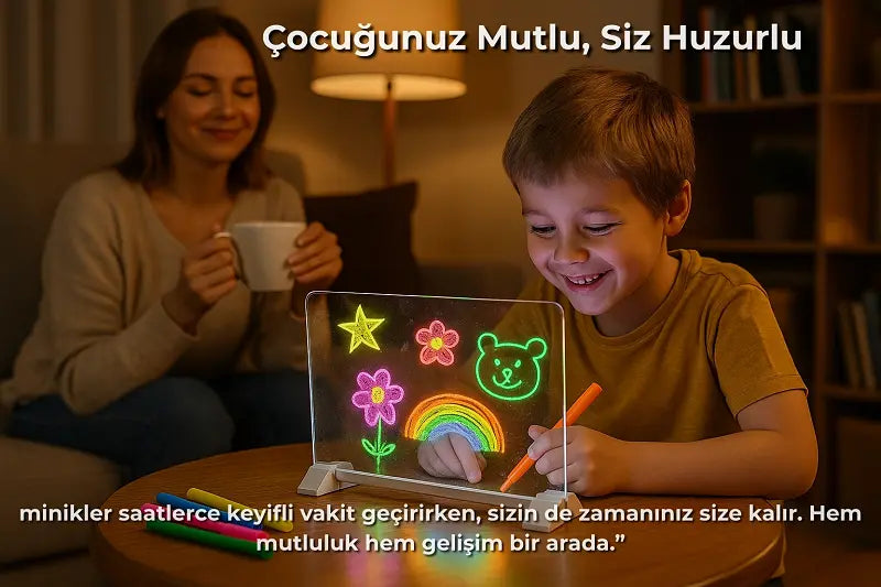 Çocuklar hayal ettiklerini ışıklı kalemle canlandırır. Eğlenirken öğrenir, el-göz koordinasyonu gelişir.